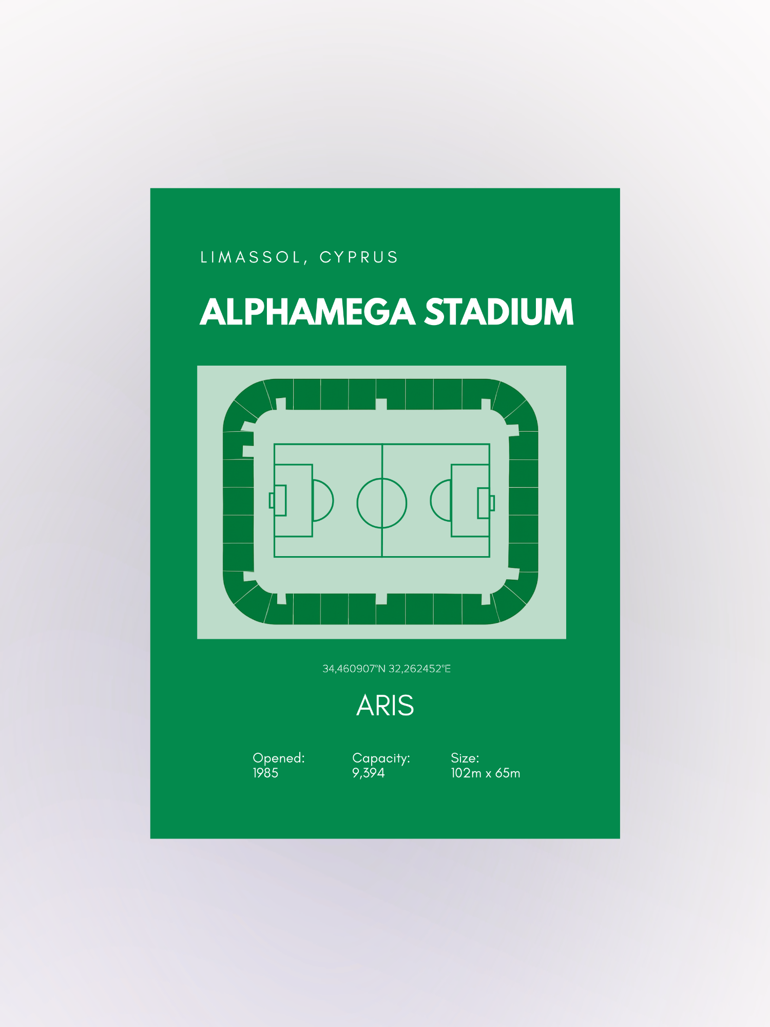 Premium vector illustration poster featuring Aris Limassol FC stadium layout design. Available in multiple sizes and formats.