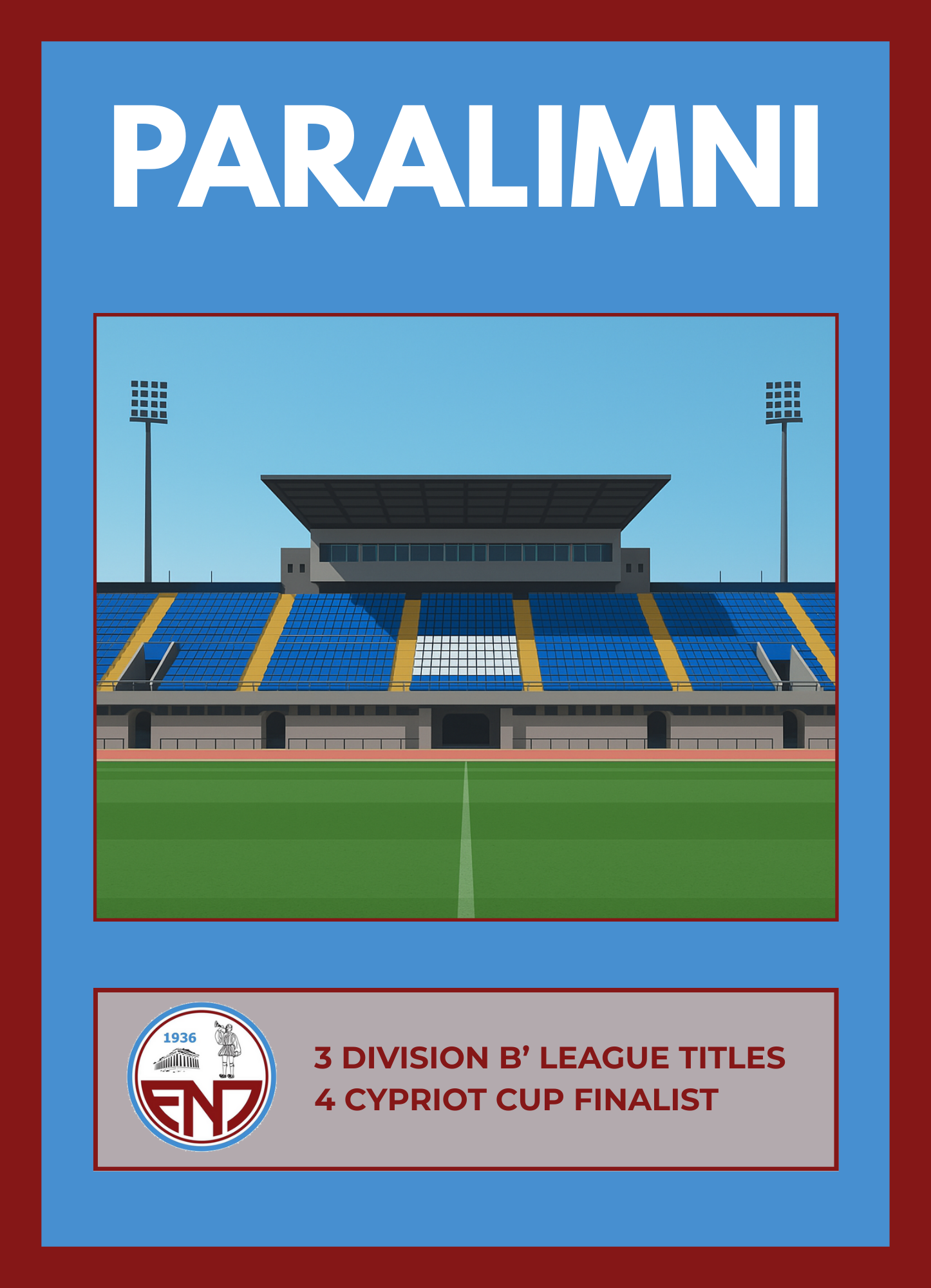 Premium vector illustration poster featuring Paralimni's away stadium design.